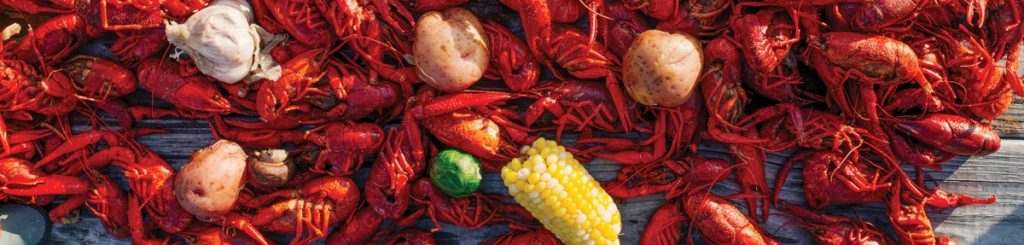 If there’s one thing that symbolizes Cajun joie de vivre, it’s the Crayfish Boil. In one pot, one boils whole crayfish, shrimp, crabs, whole potatoes, onions and corn on the cob, seasoned with cut lemons, mustard seed, cayenne pepper and the chef’s favorite blend of spices. Washed down with beer, wine or homebrew moonshine, accompanied by a good pair of fiddlers and a classic accordion, a Cajun Boil can go on for days.